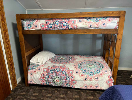 This 2 bedroom cabin has a full kitchen and large living and dining areas. Accommodations for 4+ guests.